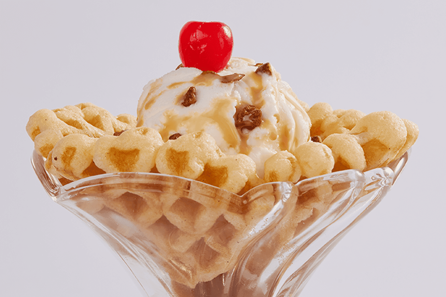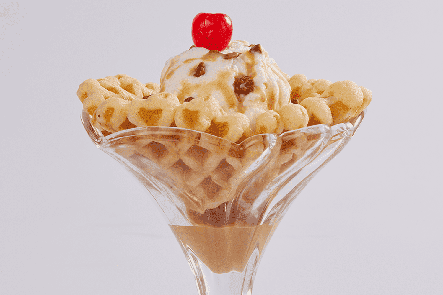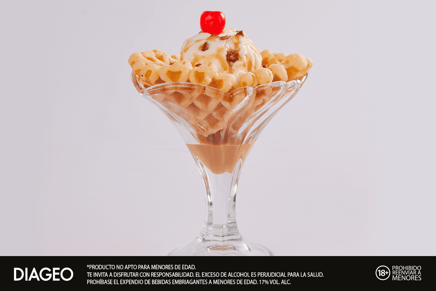 Delicious mix of vanilla ice cream with arequipe sauce with Baileys®, caramelized almonds and cherry on a waffle.