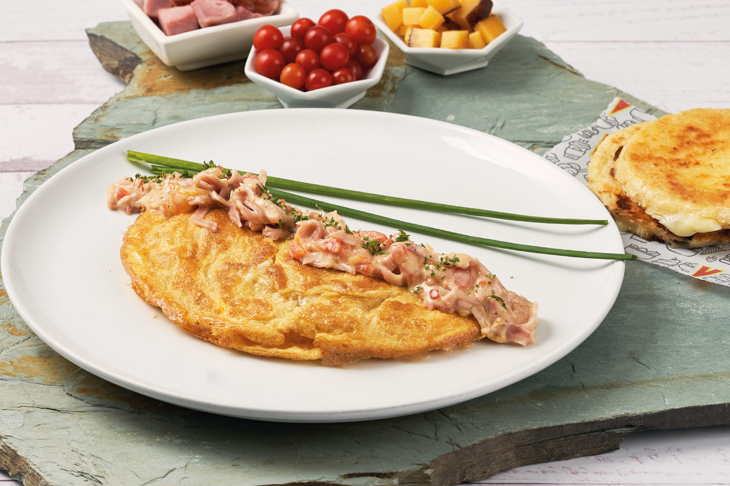 Pork ham, tomato, mozzarella cheese and Parmesan sauce. See availability