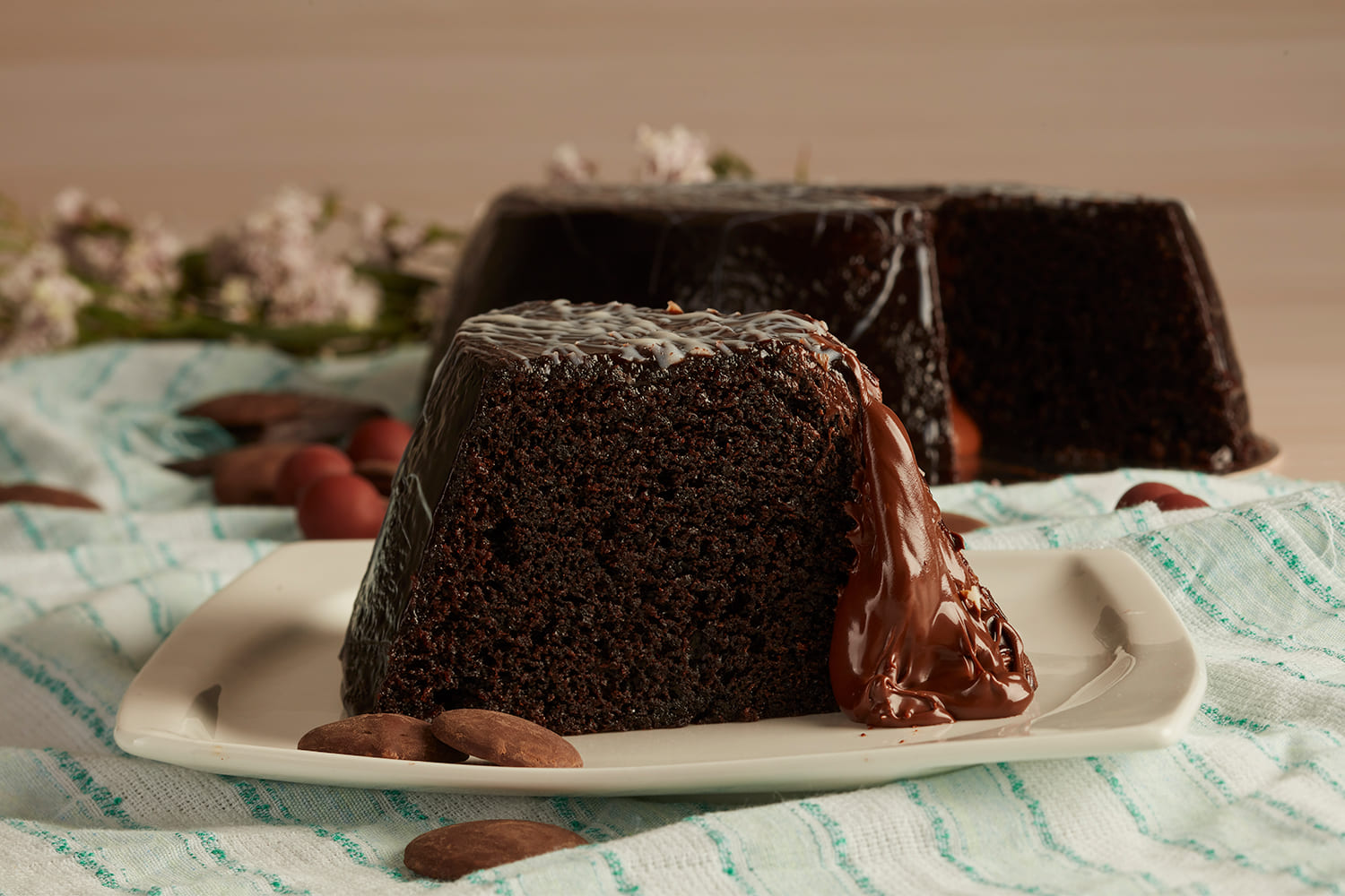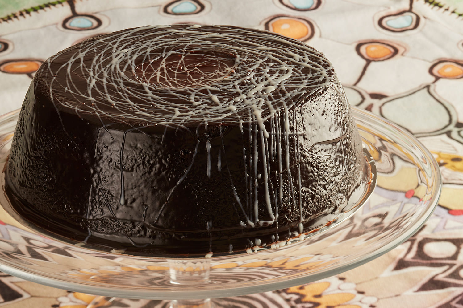 Torta de chocolate con corazón de chocolate, decorada con chocolate blanco.