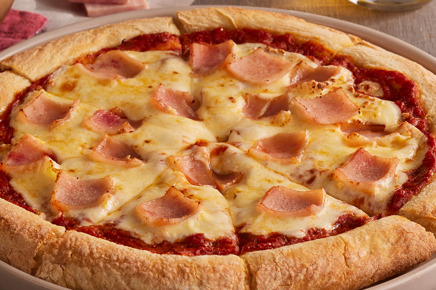 Masa madre, salsa napolitana, jamón y queso mozzarella.