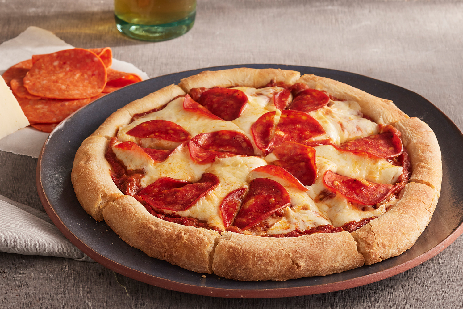 Masa madre, salsa napolitana, queso mozzarella y pepperoni.