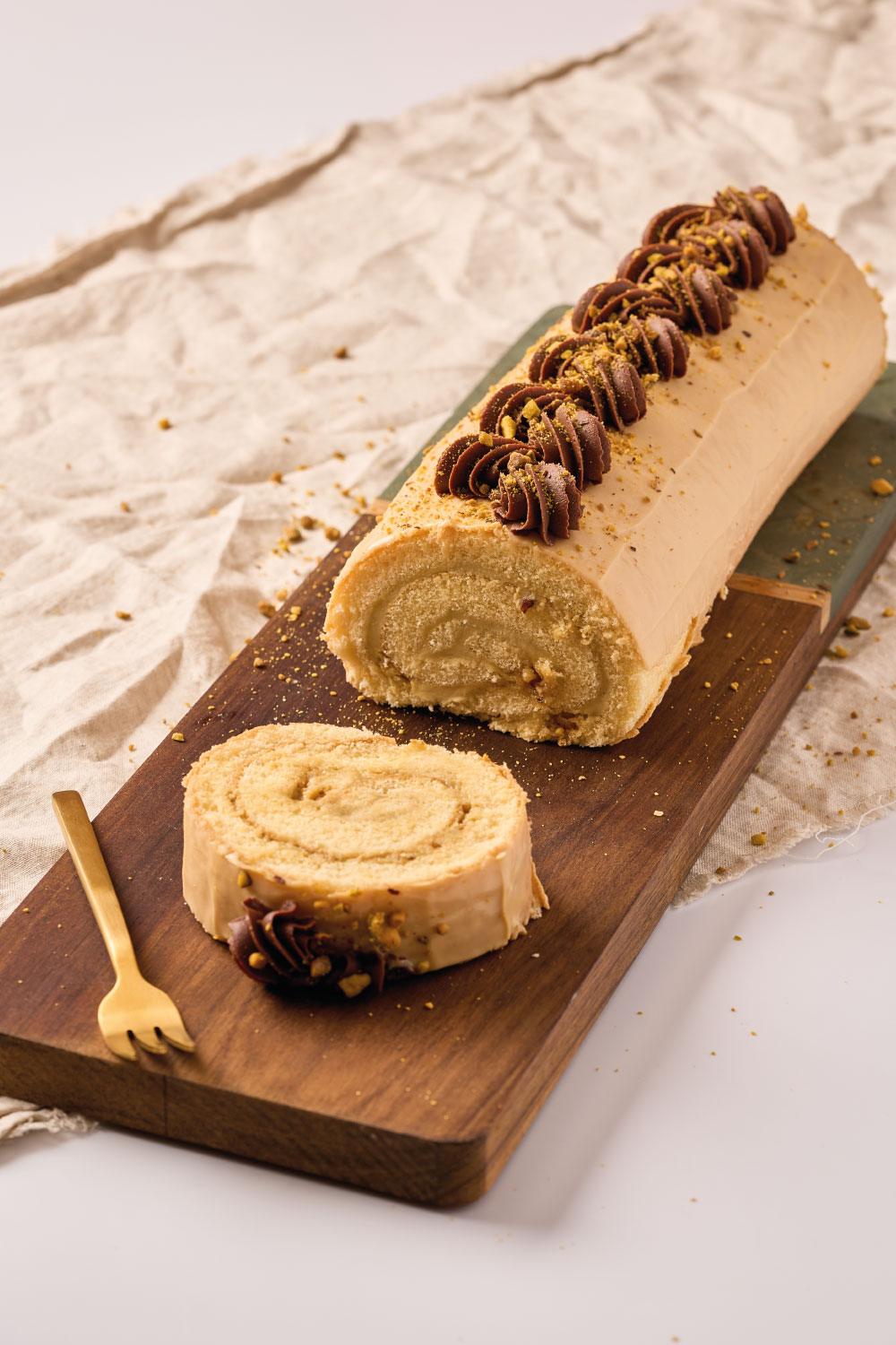 Bizcochuelo de vainilla con un relleno cremoso de pistacho y almendras caramelizadas, cubierto con ganache de caramelo salado y ruches de chocolate. Alcanza para 10 porciones.
